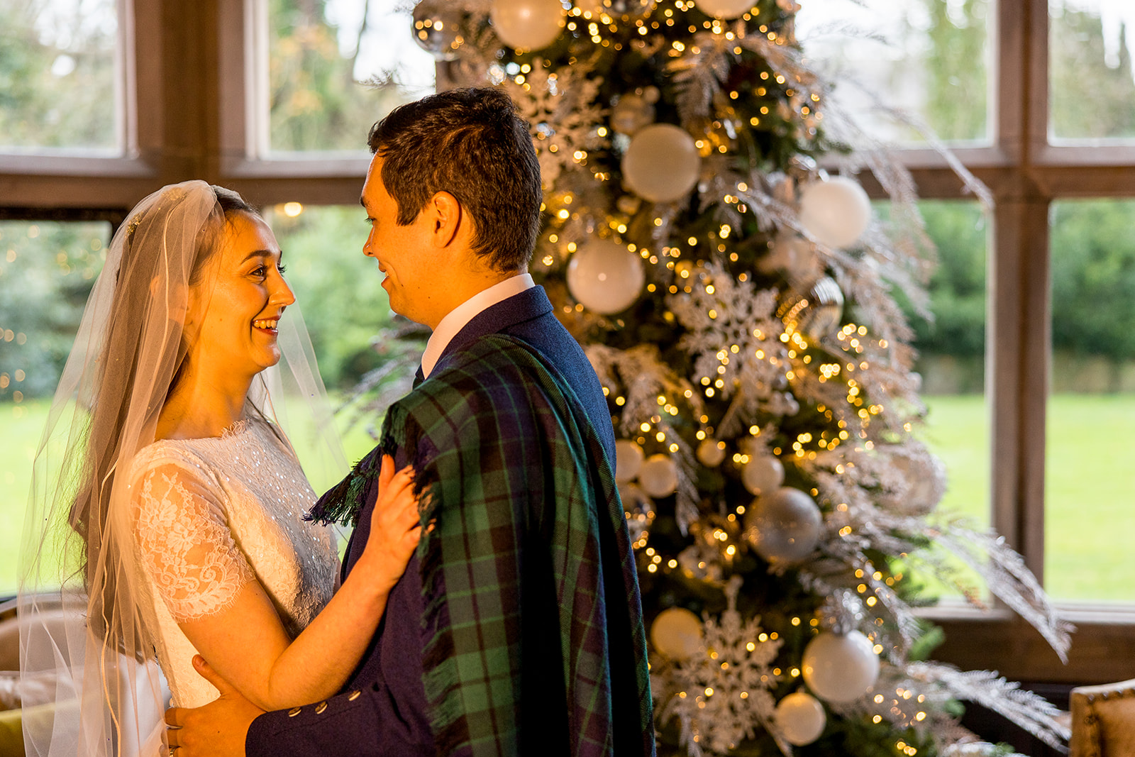 Not intentionally, but we knew we didn’t want a Halloween wedding. We hadn’t realised Ellingham Hall was going to be decorated for Christmas in mid-November and it was a really nice surprise. It made it a lot more special with the beautiful decor. Christmas hadn’t really been at the forefront of our minds as such, but it came together perfectly.